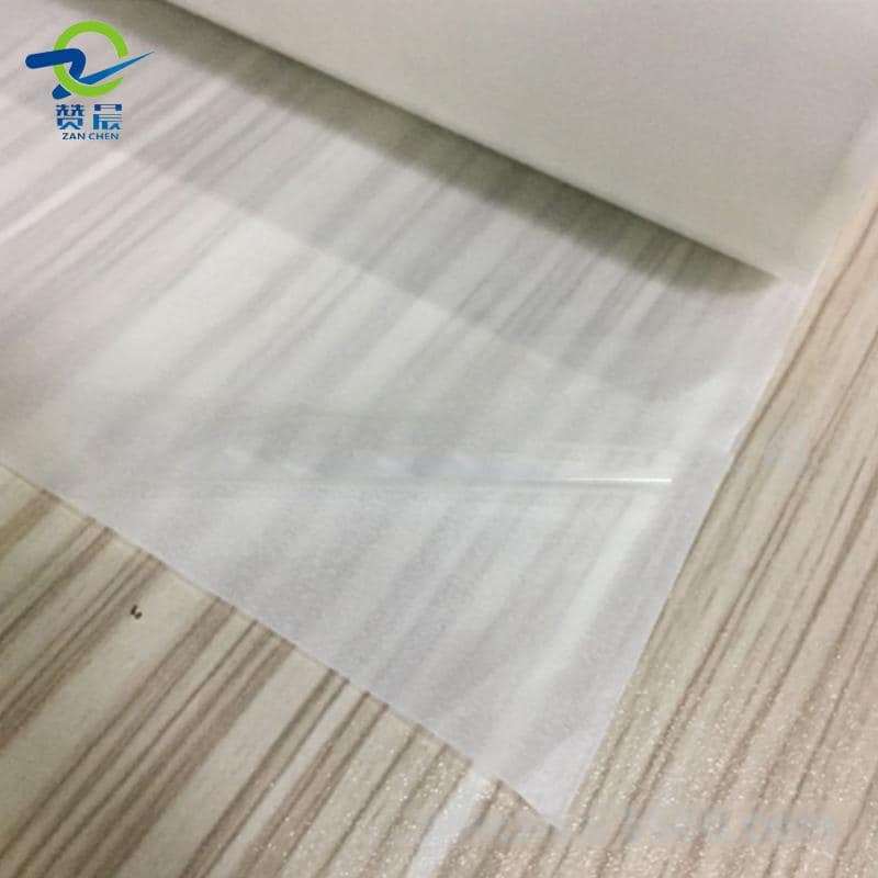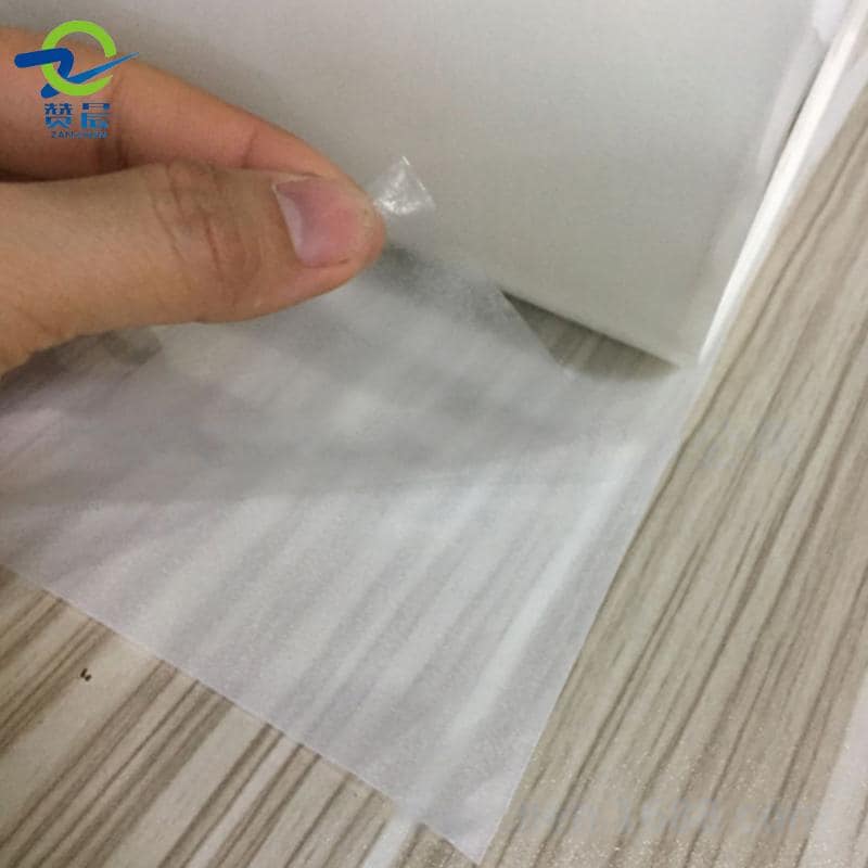 產品外觀:熱熔膠薄膜層+不粘膠的離型紙 (卷成一卷)